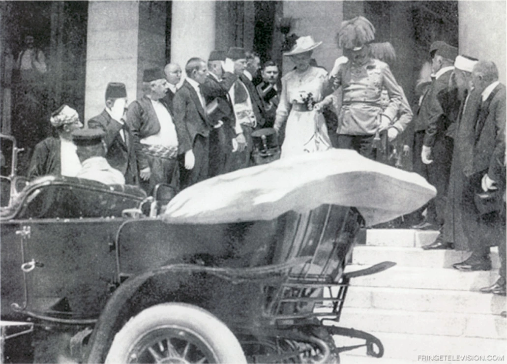 - Presencia de un observador en una fotografía del archiduque Francisco Fernando y su esposa, dejando un edificio momentos antes de su asesinato, que sirvió de catalizador de la Primera Guerra Mundial
