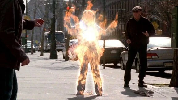 В это время в Бостоне у Сьюзан Претт неприятности, кажется, что она задыхается. Она садится в автобус и прислоняется к стеклу, отчего на нём образуется конденсат. Сьюзан дотрагивается до сиденья перед ней, и газета, лежащая там, начинает дымиться. Девушка выходит из автобуса, не понимая, что с ней происходит. Она начинает паниковать, превращается в огненный шар и взрывается.
