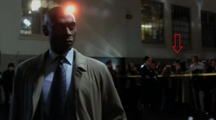 Во время зачистки дома, где жил Юджин, Наблюдатель стоит среди жильцов за оцеплением.