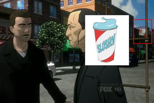 В серии «Улучшенные люди» плакат с рекламой напитка находится на стене магазина, откуда похитили Оливию. Судя по плакату, существует не только напиток, но и мороженое Слушо.