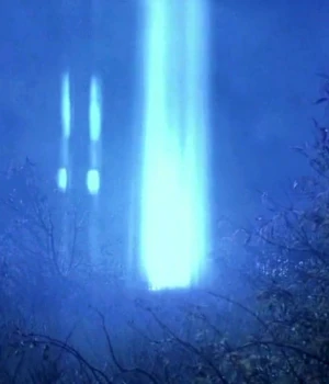 Back at Little Hill, Loeb's team finishes assembling a ring-shaped device on the ground. They step back as it begins to glow, emitting a column of light that reaches into the sky. In Germany, Jones takes the eye drops, applies the sun block, and stands in the corner of his cell. As a bright flash of light envelops him, he suddenly materializes in the column of light inside the ring at Little Hill.