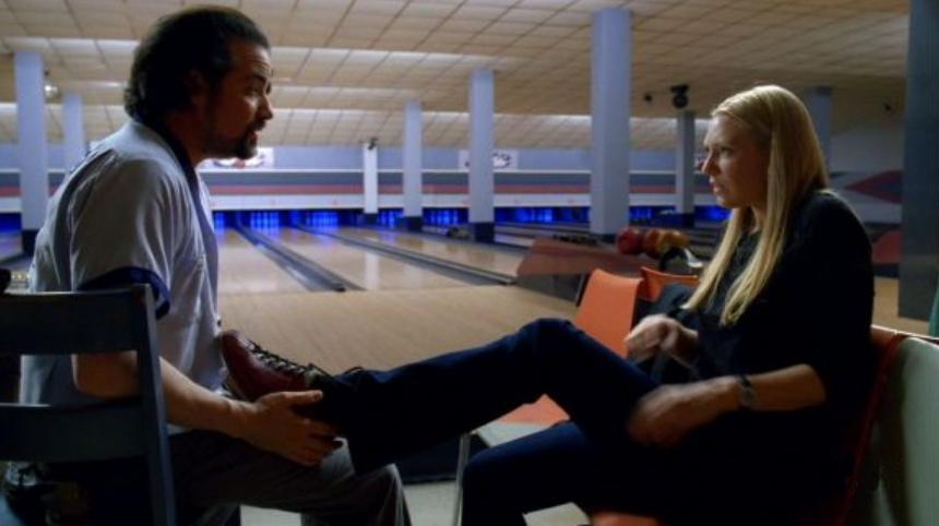 After measuring her hand for a ball, he tells her to, again, come back tomorrow. She puts a gun to the back of Weiss' head and yells; "Now you listen to me, you son of a bitch. I am not here to bowl, or to try on shoes, or to have you play games with my head. I am here because I was told that you could fix me." They look towards the bench where she was sitting seeing her cane leaning against it. He plainly says "Take care, Agent Dunham." ("Fracture")